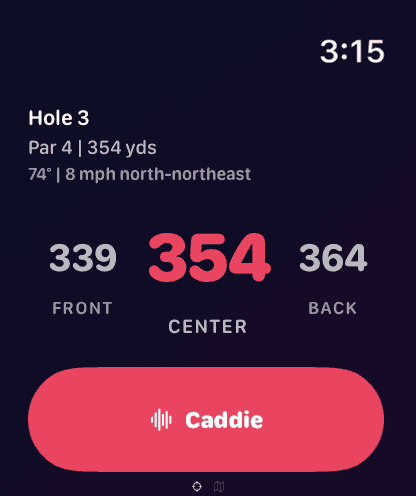 Ask your caddie what to play, or trigger from watch or phone and get your strategy in the moment, delivered to your earbuds.